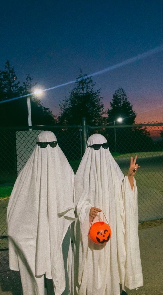Simply use a white sheet and, with scissors, cut two holes at eye level. Then, put on dark sunglasses.