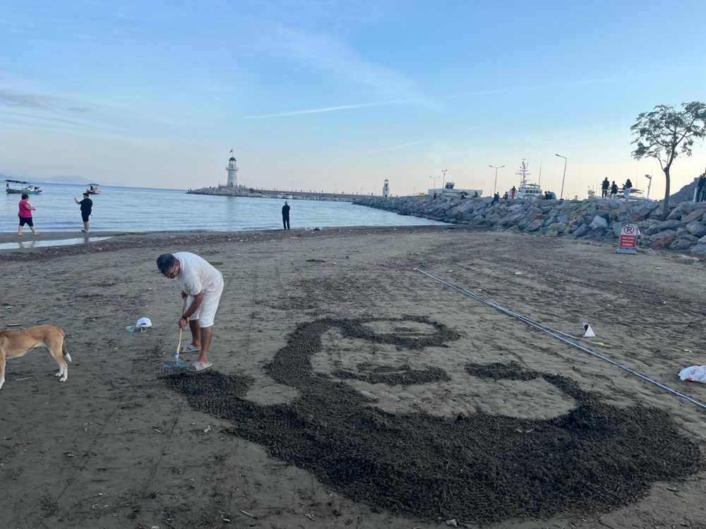 Using the natural texture of the sand as a canvas, the artist meticulously crafted Barış Manço's characteristic facial features and hair details. After the work was completed, residents and tourists walking along the beach gazed at the giant portrait with interest, taking photos with their mobile phones.