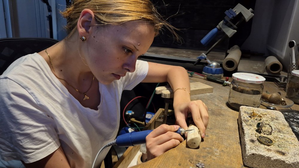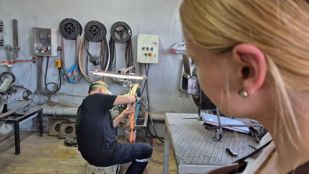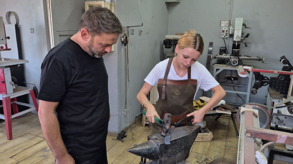 Yaprak Altınışık, who learned knifemaking alongside her father, said her original profession was jewelry making, and that seeing her father's work piqued her interest in knife art. Altınışık said, "Every profession has its own challenges. Currently, I'm facing more challenges because I'm an apprentice. When making knives, I struggle more with the engraving part. I struggle even more when we work on the engravings and textures on the handle."