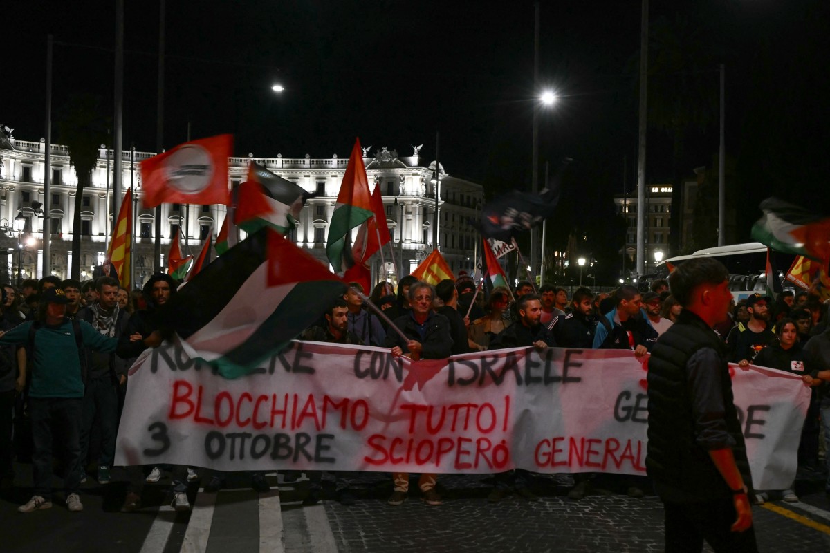 Protest w Rzymie przeciwko przechwyceniu przez Izrael flotylli Sumud Global. Zdjęcie: AFP