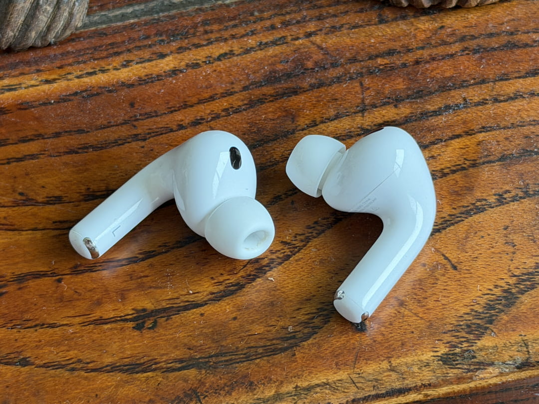 AirPods Pro 3 charakteryzują się nieco zmienioną konstrukcją w porównaniu do swoich poprzedników. Końcówki są teraz nieco bardziej odsunięte, aby lepiej dopasować się do uszu. Taka konstrukcja jest również wygodniejsza w noszeniu i wydaje się dobrze sprawdzać w codziennym życiu i podczas ćwiczeń.